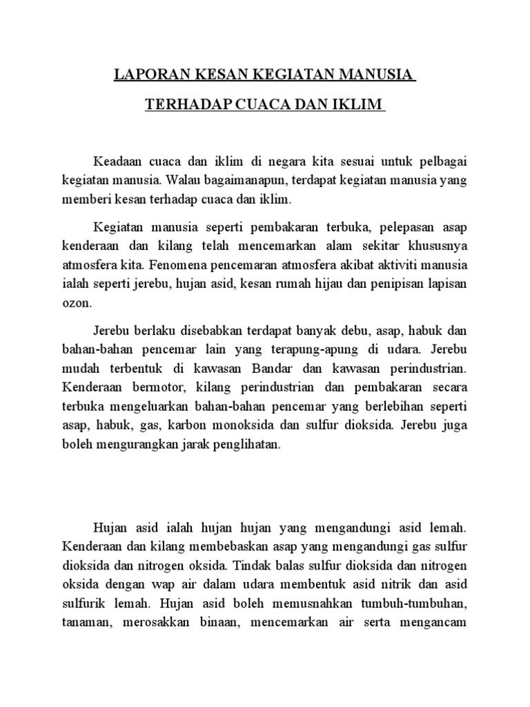 Sistem Atmosfera Dan Manusia Pencemaran Udara Jerebu Dan Hujan Asid