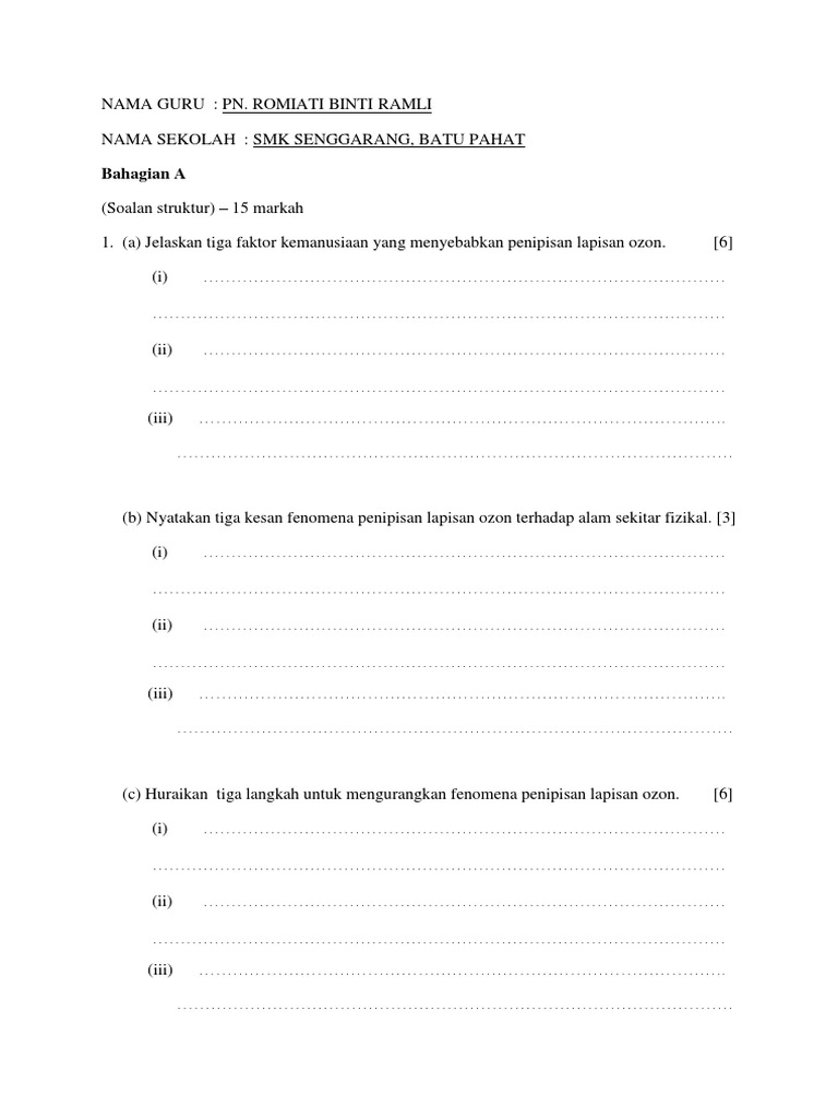 Soalan Dan Skema Penipisan Lapisan Ozon