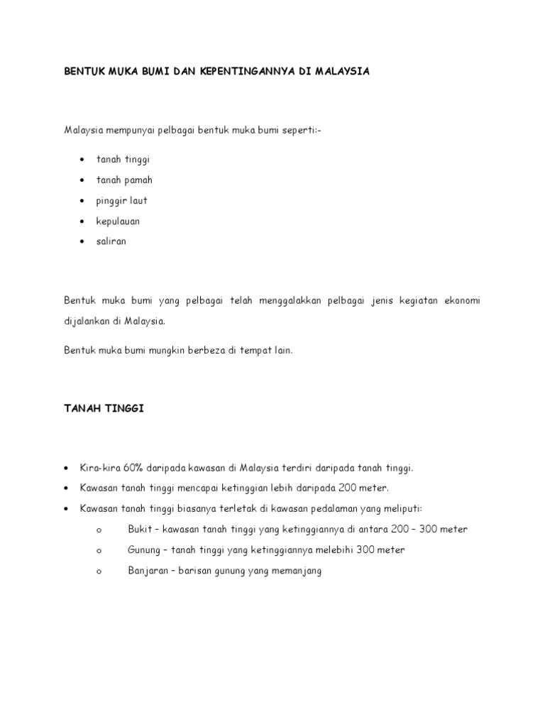 Bentuk Muka Bumi Dan Kepentingannya Di Malaysia