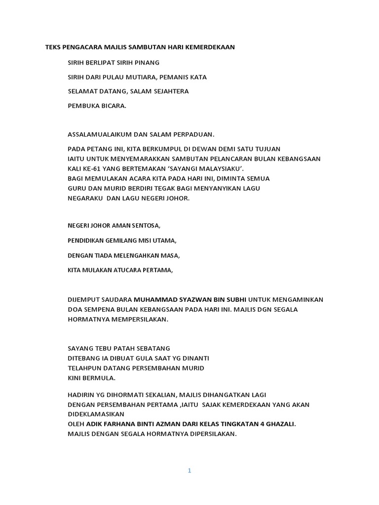 36978398 Teks Pengacara Majlis Sambutan Hari Kemerdekaan