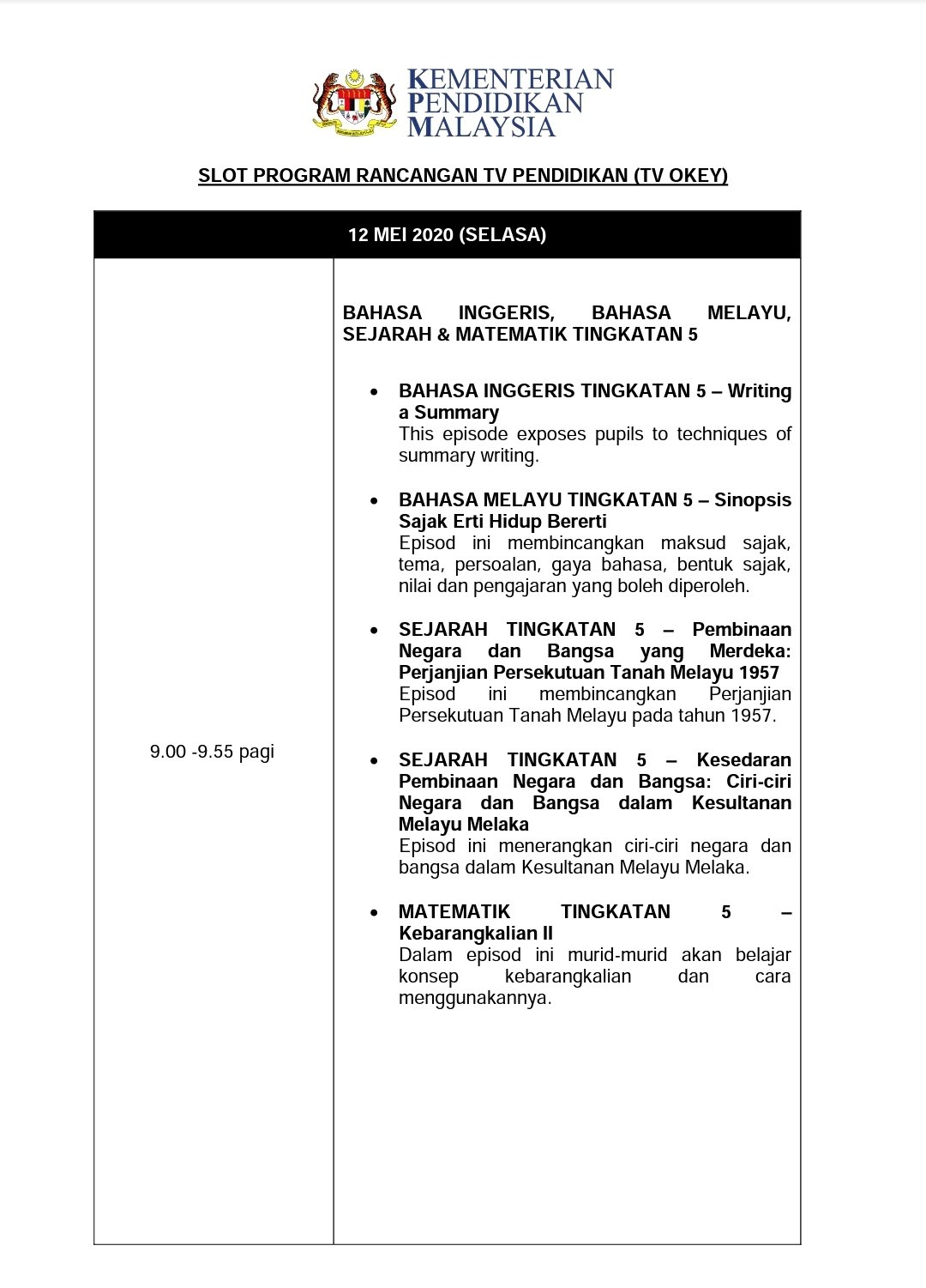 Kpm En Twitter Jadual Program Rancangan Tv Pendidikan Tv Okey 12 Mei 2020 Ia Juga Boleh Ditonton Secara Percuma Menerusi Saluran 110 Myfreeview Tv Menerusi Saluran 146 Di Astro Dan Astro Njoi