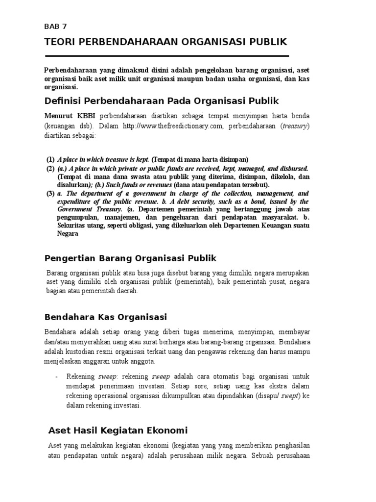 Definisi Perbendaharaan Pada Organisasi Publik
