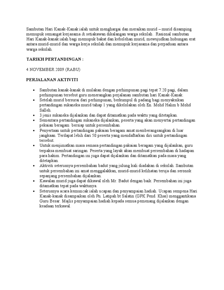 Laporan Sambutan Hari Kanak Docx