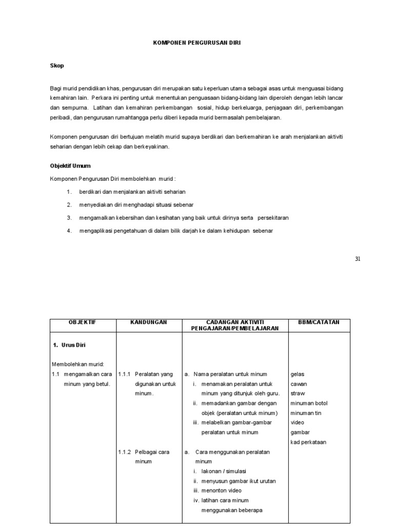 Contoh Sukatan Pelajaran Rancangan Tahunan Pengurusan Diri Bagi Pendidikan Khas Dr Dot Nur Tikah