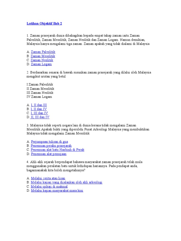 Soalan Zaman Prasejarah Tingkatan 1 Kuora J