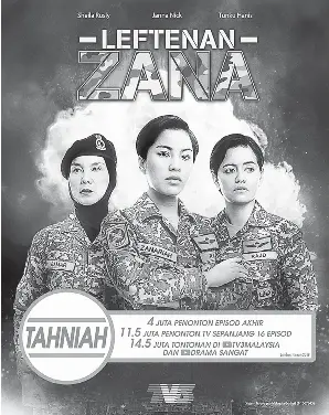 Drama leftenan zana pernah ditayangkan dan mendapat 10 juta penonton di televisyen menariknya drama ini ialah mengisahkan seorang gadis yang ingin bekerjaya sebagai tentera. Rahmat pasti zana tidak akan bertahan lama di sana. Walaupun pernah berkerjaya sbg tentera darat namun tidak memberikan peluang kepada zana utk menjadi sbg dr mereka. Highlight drama leftenan zana episod 16 episod akhir sekali lagi drama ini akan bersiaran di slot lestary bersiaran mulai malam ini di tv3 jam 9 00 malam.