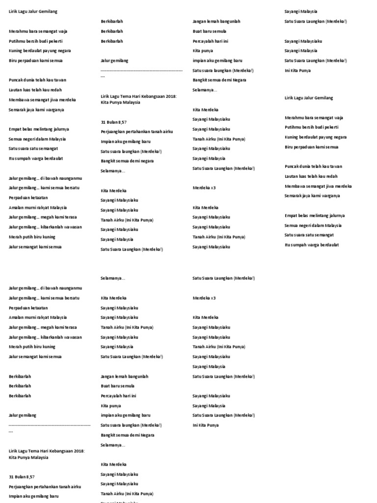 Lirik Lagu Ini Kita Punya Docx 31 Bulan 8 57 Perjuangkan Pertahankan Tanah Airku Impian Aku Gemilang Baru Satu Suara Laungkan Merdeka Bangkit Semua Course Hero