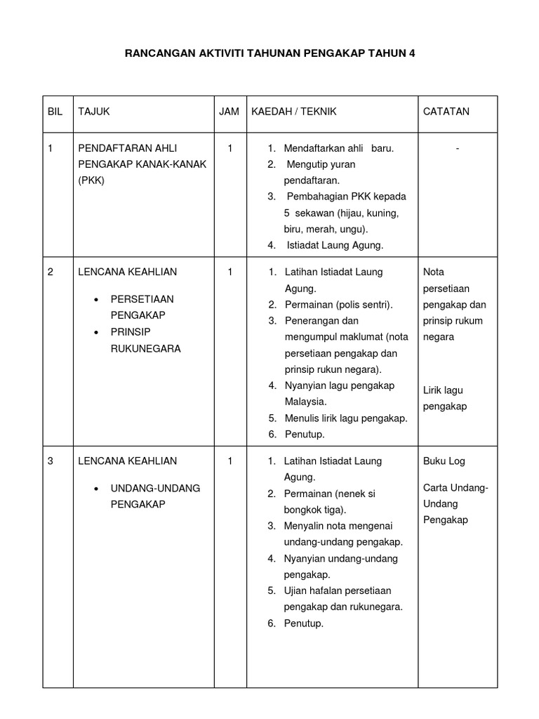Rancangan Aktiviti Tahun 4