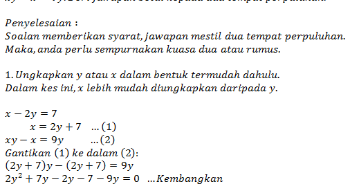 Contoh Soalan Dan Jawapan Persamaan Linear Serentak Selangor T