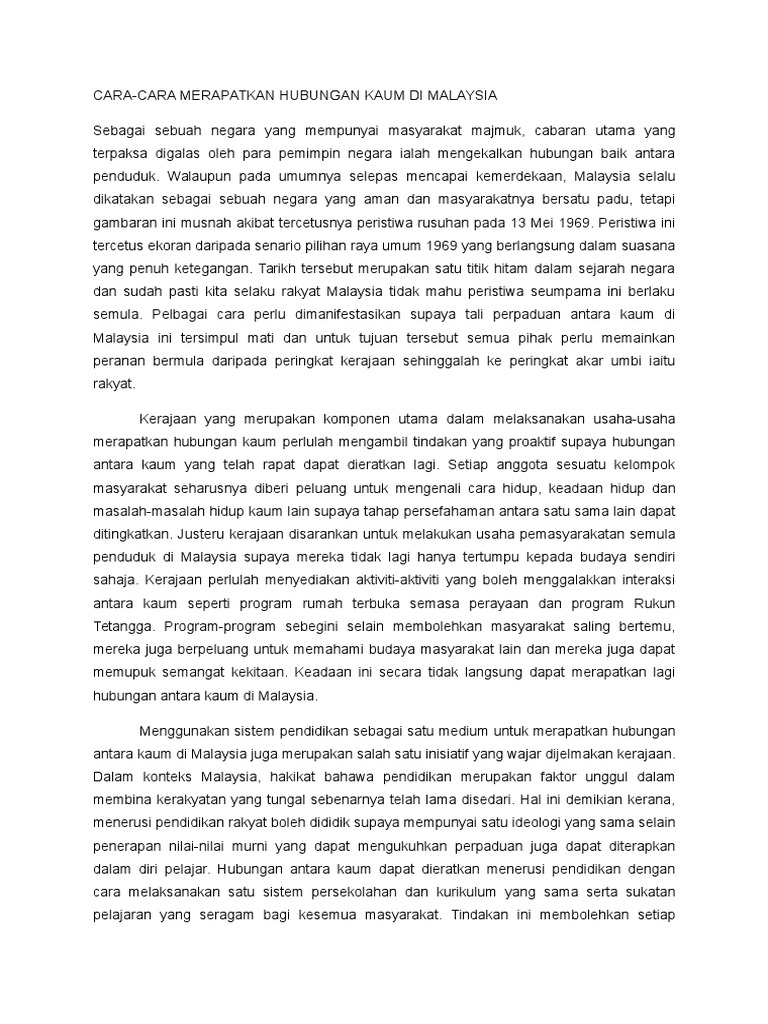 Cara Merapatkan Hubungan Antara Kaum Di Malaysia
