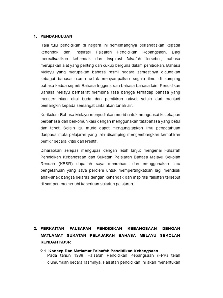 Justeru itu pendidikan secara berterusan ini merupakan hasrat utama falsafah pendidikan kebangsaan. Falsafah pendidikan kebangsaan akan menentukan arah haluan asas dan sumber aspirasi kepada semua usaha dan rancangan dalam bidang pendidikan tajul dan noraini 1992. Matlamat falsafah pendidikan kebangsaan berlandaskan falsafah pendidikan kebangsaan kebangsaan fpk maka matlamatnya adalah untuk melahirkan insan yang harmonis dan seimbang dari pelbagai aspek iaitu jasmani emosi rohani intelek dan sosial supaya menjadi warganegara malaysia yang baik dan berguna. Peranan guru merealisasikan falsafah pendidikan kebangsaan fpk di sekolah 1.