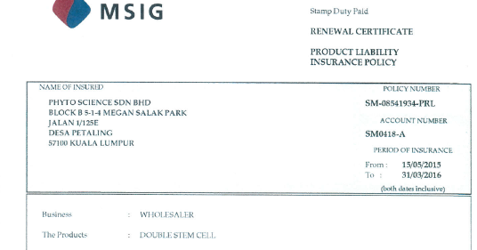 Miracle Healing With Plant Stemcells Msig Insurance Certificate