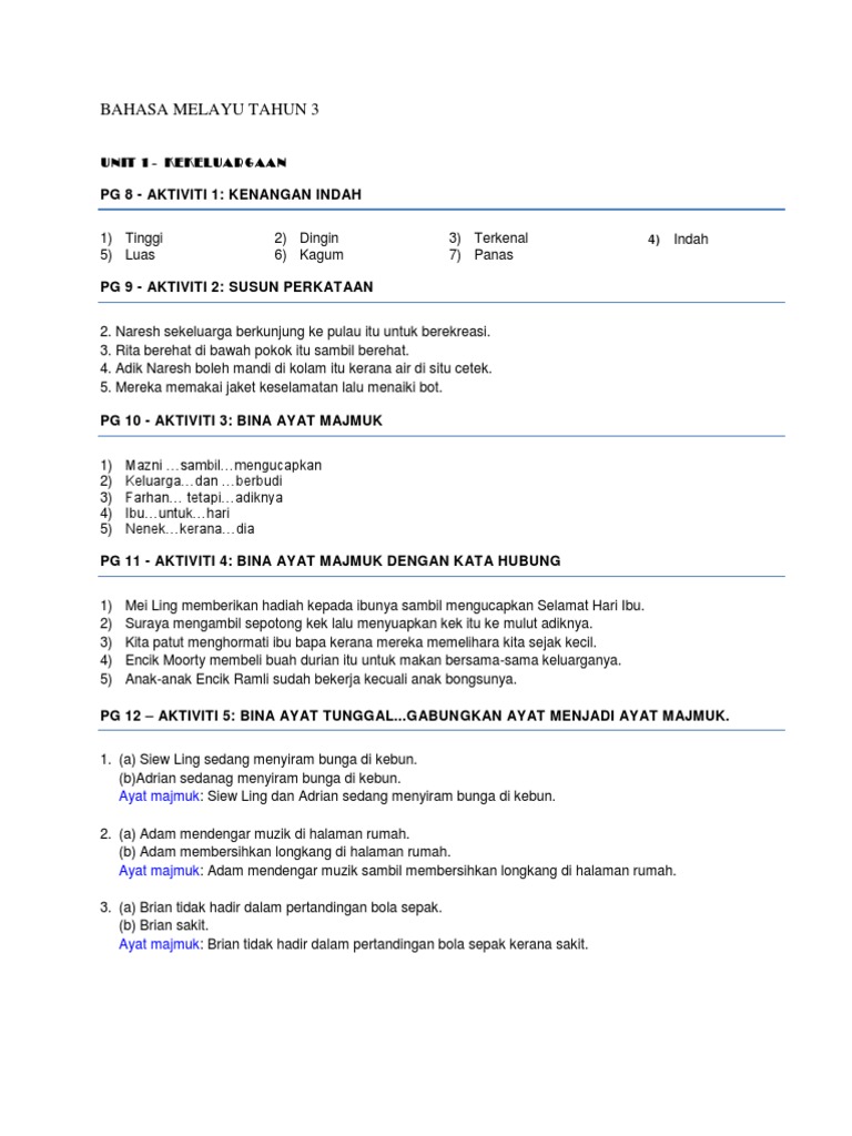 Cadangan Jawapan Buku Teks Dan Buku Aktiviti Bahasa Melayu Tahun 3 Sk Kssr 2019 Shopee Malaysia