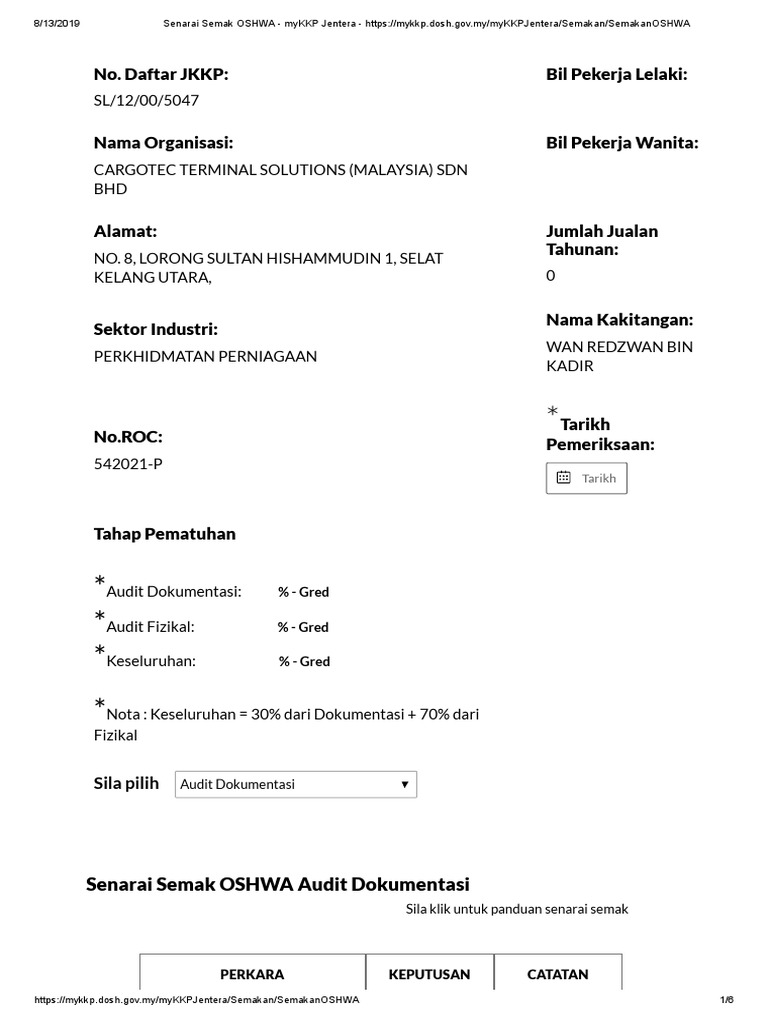 Http Mykkp Dosh Gov My Manual Panduan 20pengguna 20penilaian 20tempat 20kerja 20 Oshwa 20pemohonv3 Pdf